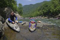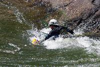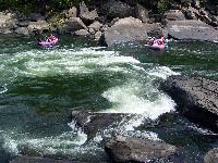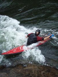 Big Rock - Ryan in the staging eddy at 1410cfs. You can see the lower part of the seam here too.