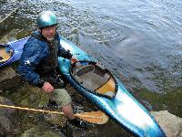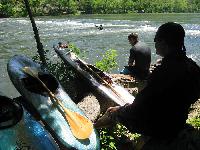 Big Rock - Ryan in the staging eddy at 1410cfs. You can see the lower part of the seam here too.