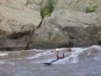 Big Rock - Ryan in the staging eddy at 1410cfs. You can see the lower part of the seam here too.