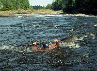 Big Rock - Ryan in the staging eddy at 1410cfs. You can see the lower part of the seam here too.