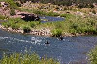 Big Rock - Ryan in the staging eddy at 1410cfs. You can see the lower part of the seam here too.