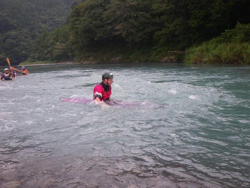 Big Rock - Ryan in the staging eddy at 1410cfs. You can see the lower part of the seam here too.