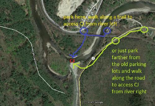 Big Rock - VIew from the right bank looking at the spot. 1380cfs.